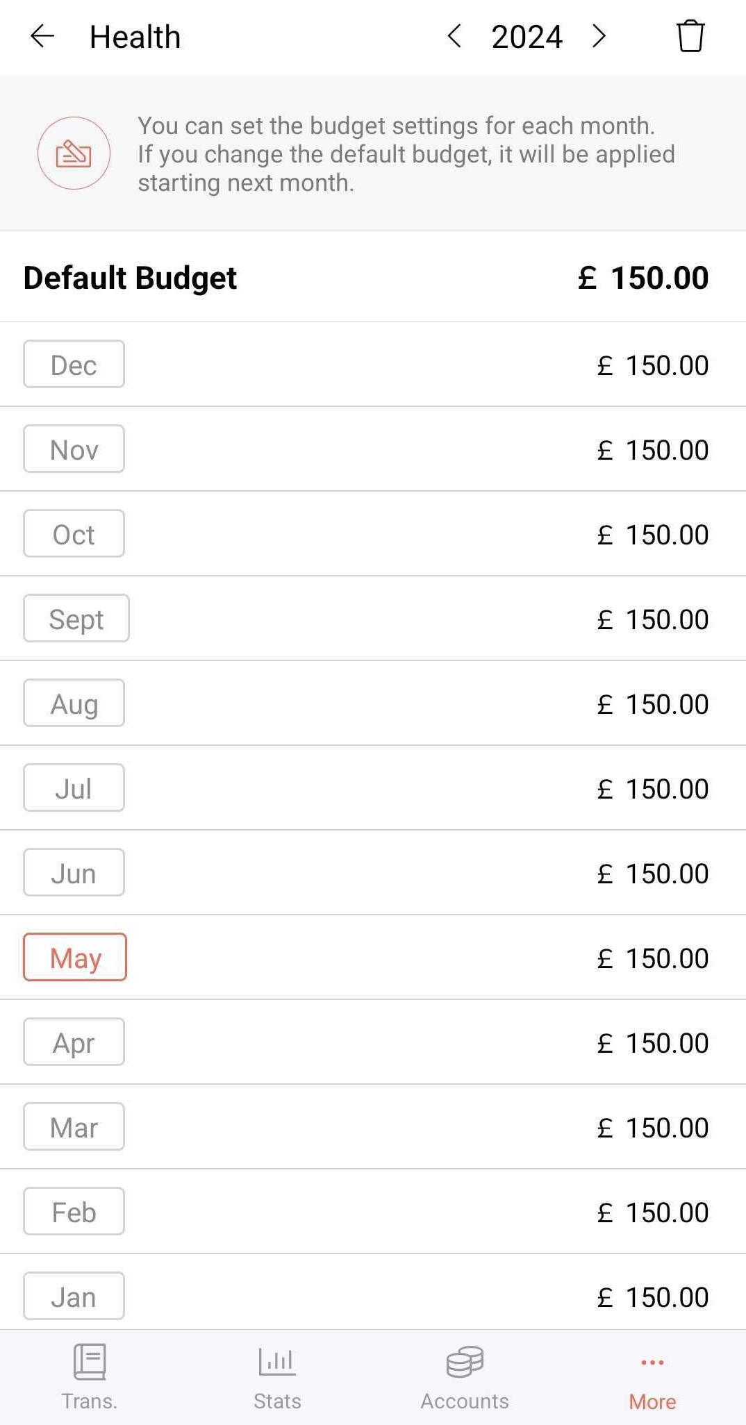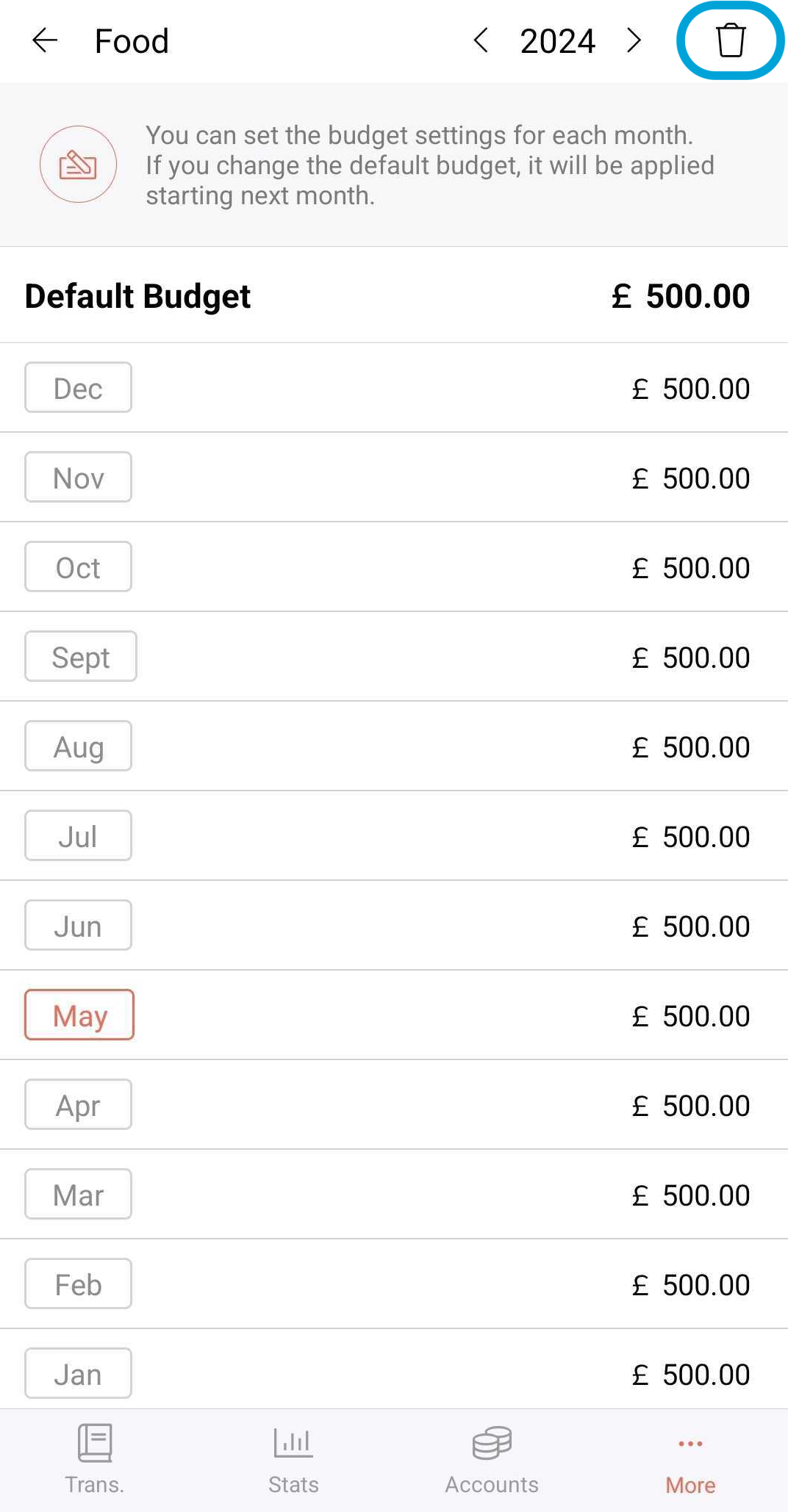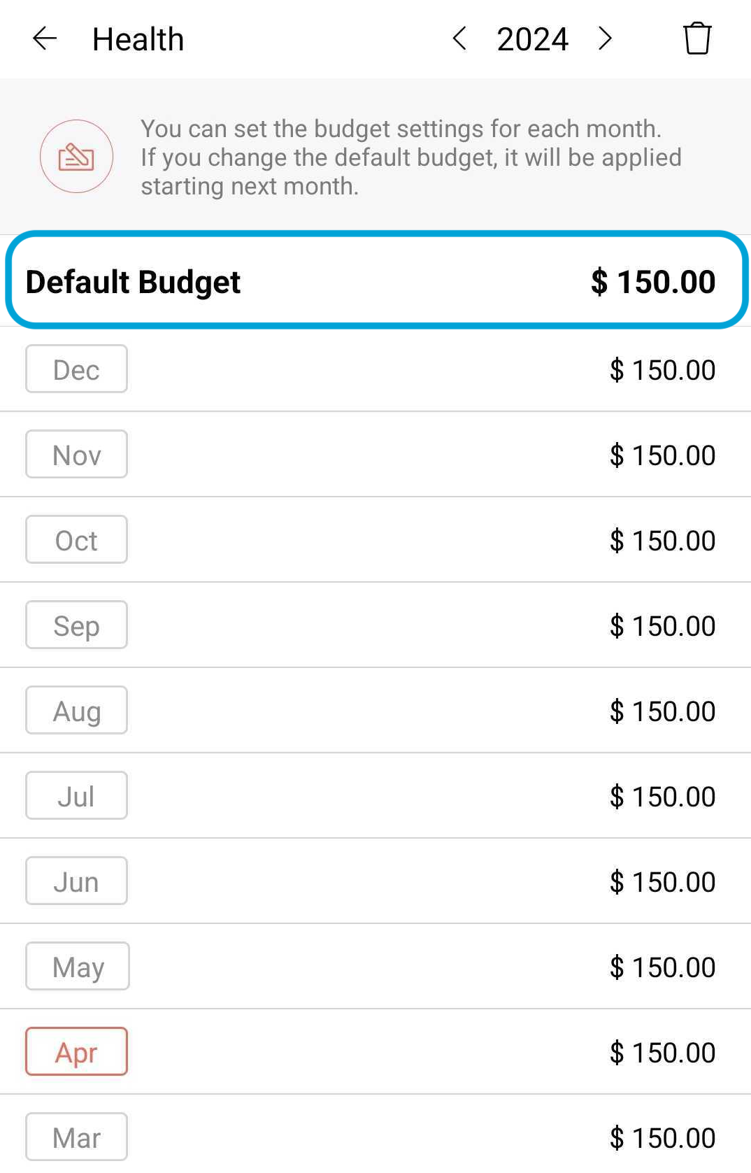 In addition, if you had edited the budget amount for an individual month, and changed the default budget afterward, the change will not be applied to that individual month.