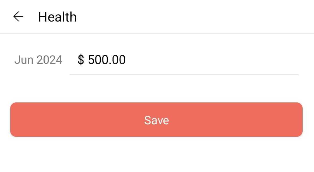 3) Once you select the category and insert the amount, click save to add the budget.