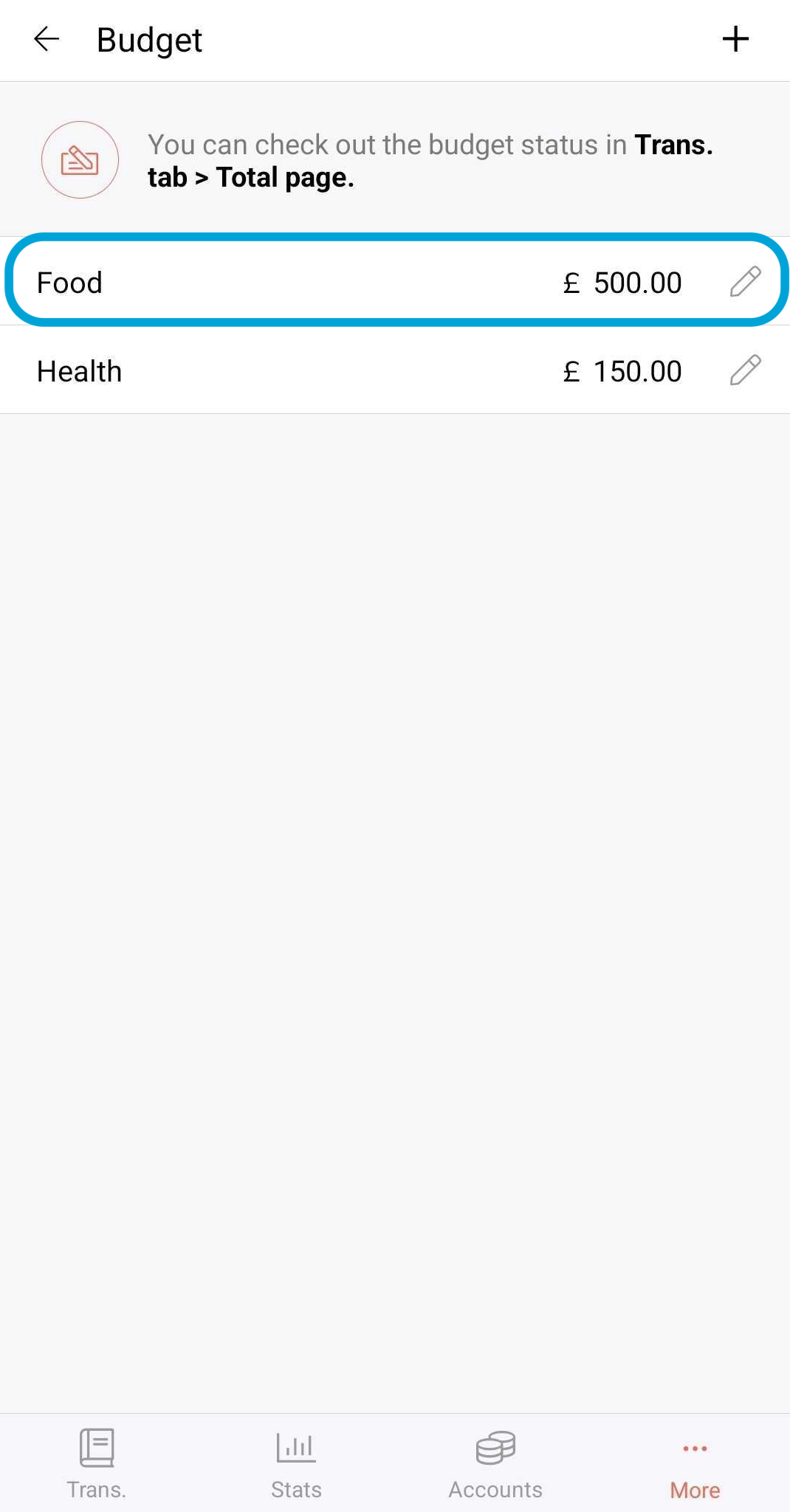 The Total Budget on the top helps you keep track of your budget status as a whole.