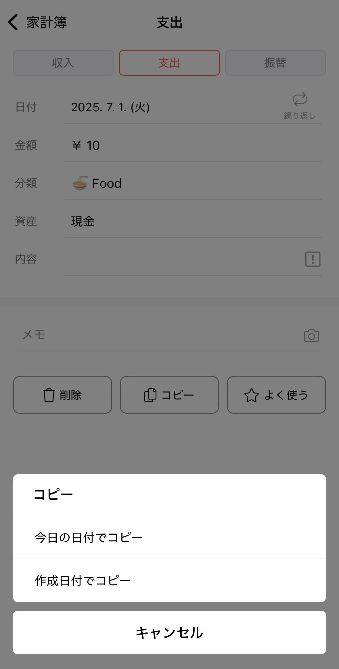 -内訳をコピーする際、内訳の日付を今日または作成日付の中で選択できるように改善されました。